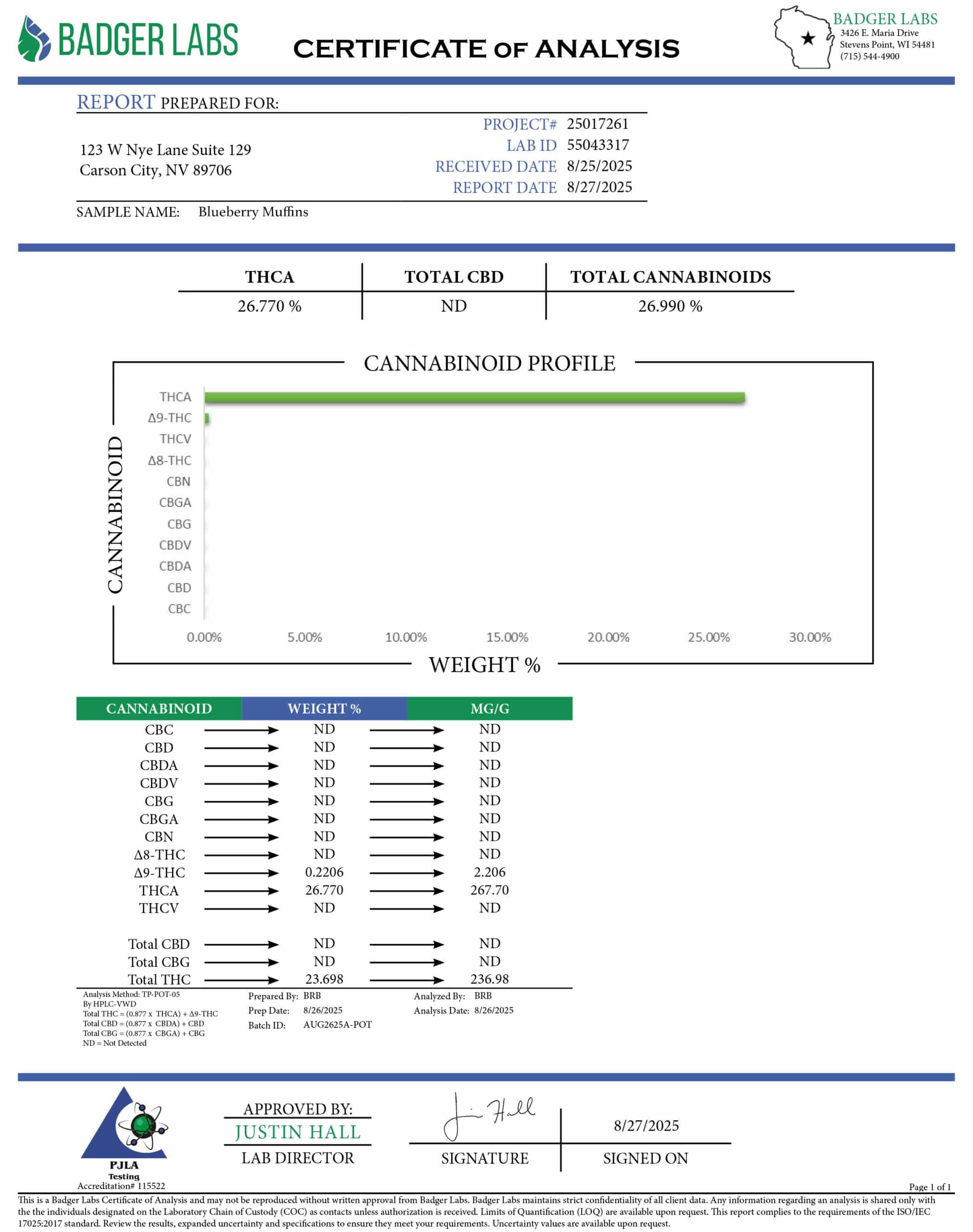 - Blueberry Muffins: Click to view COA