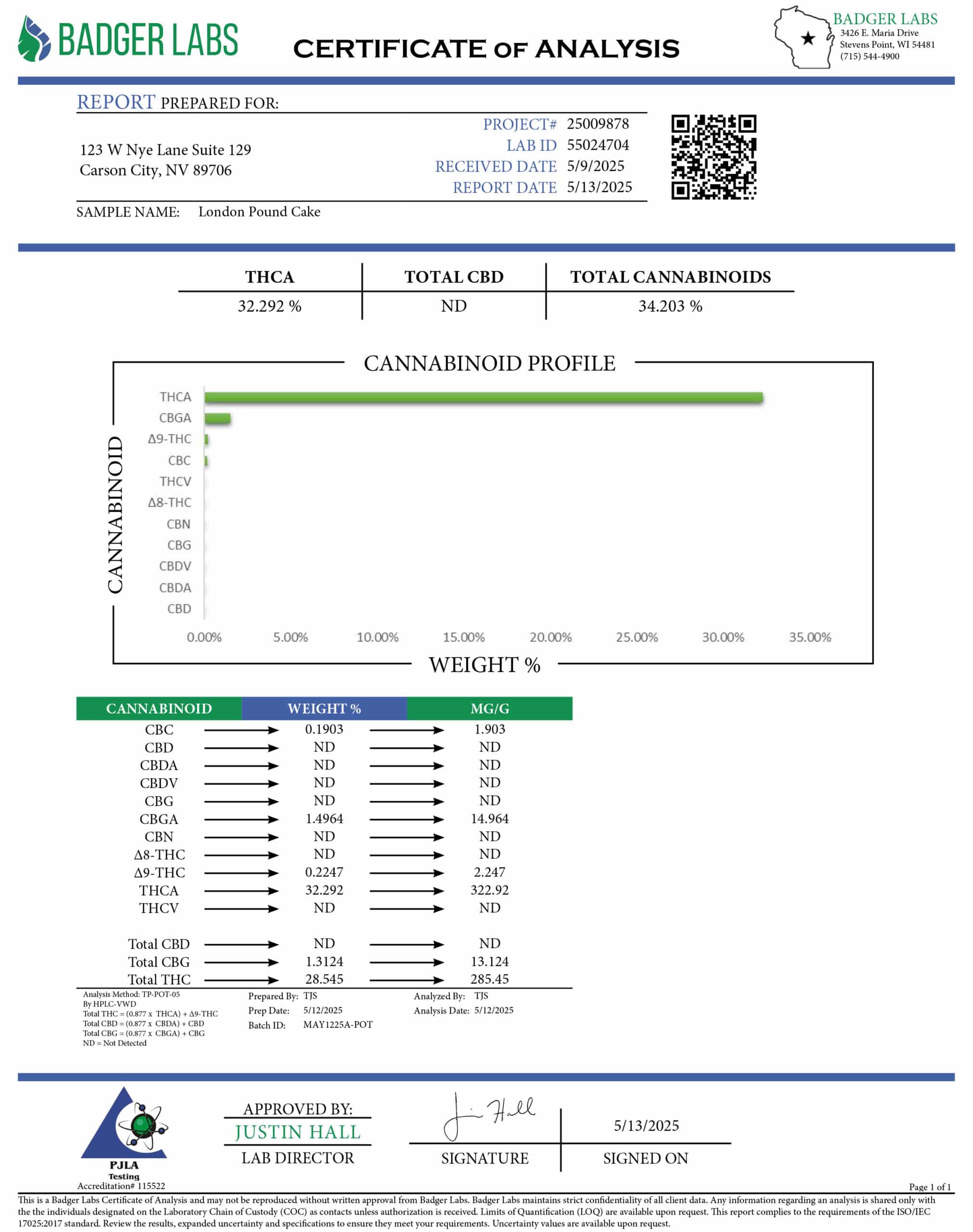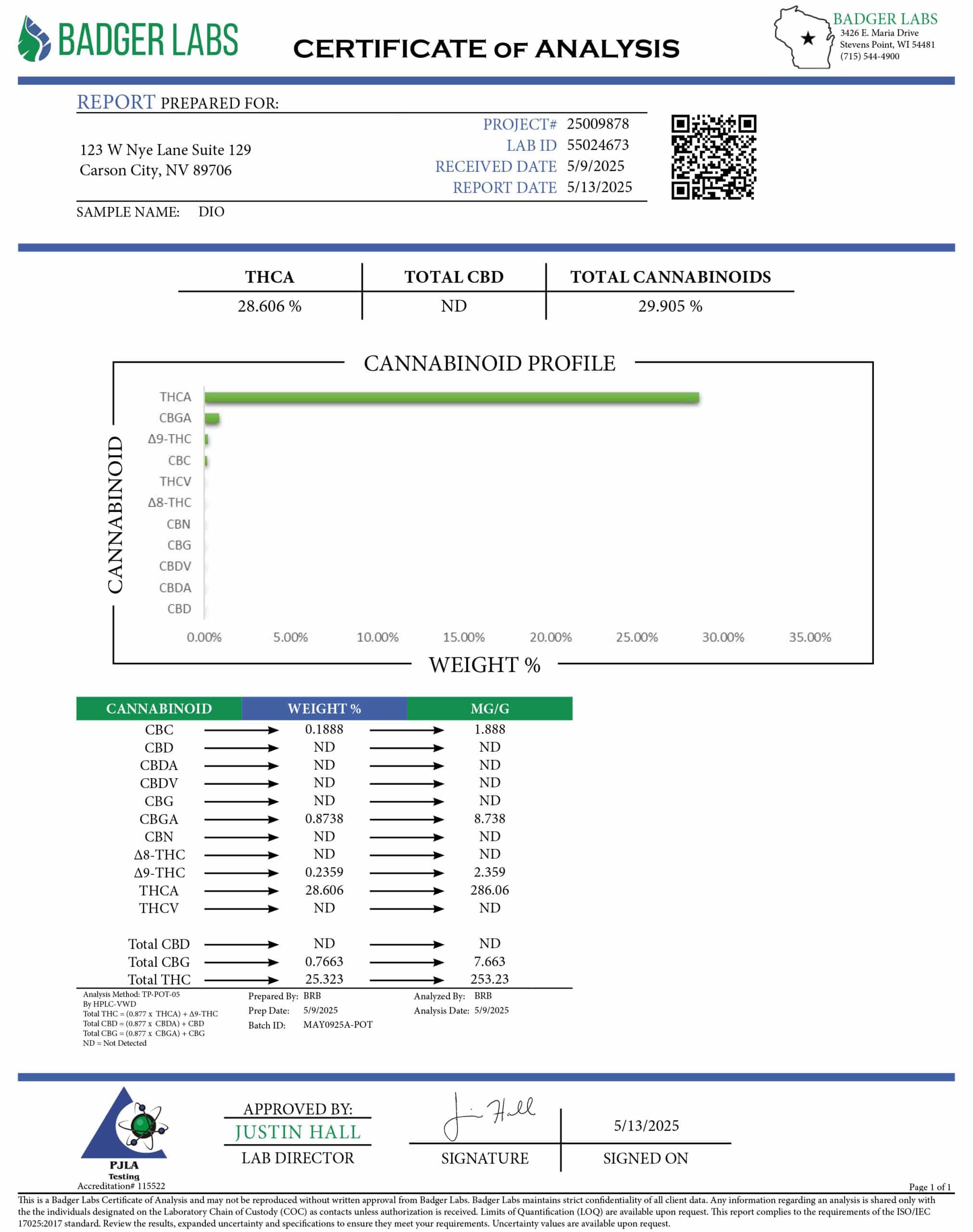 - Verde Dream OG: Click to view COA
