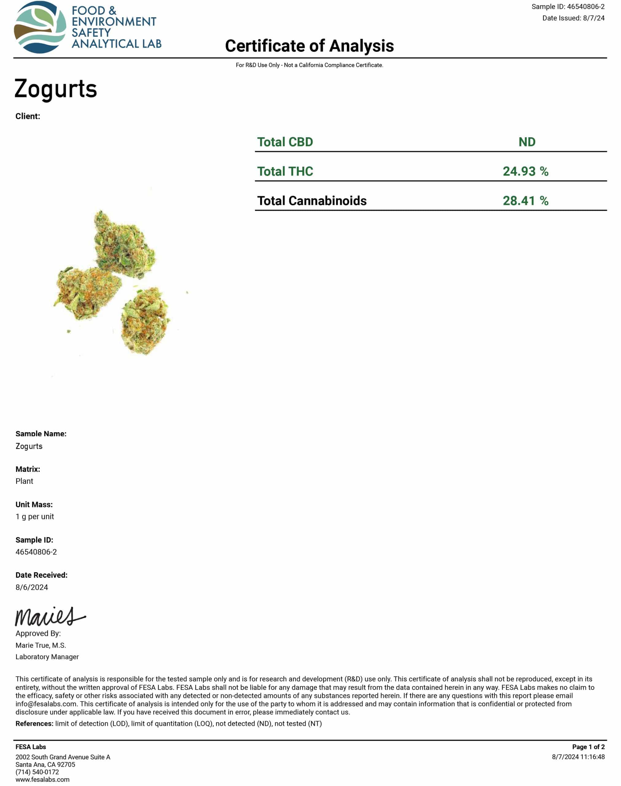 - Maria: Click to view COA