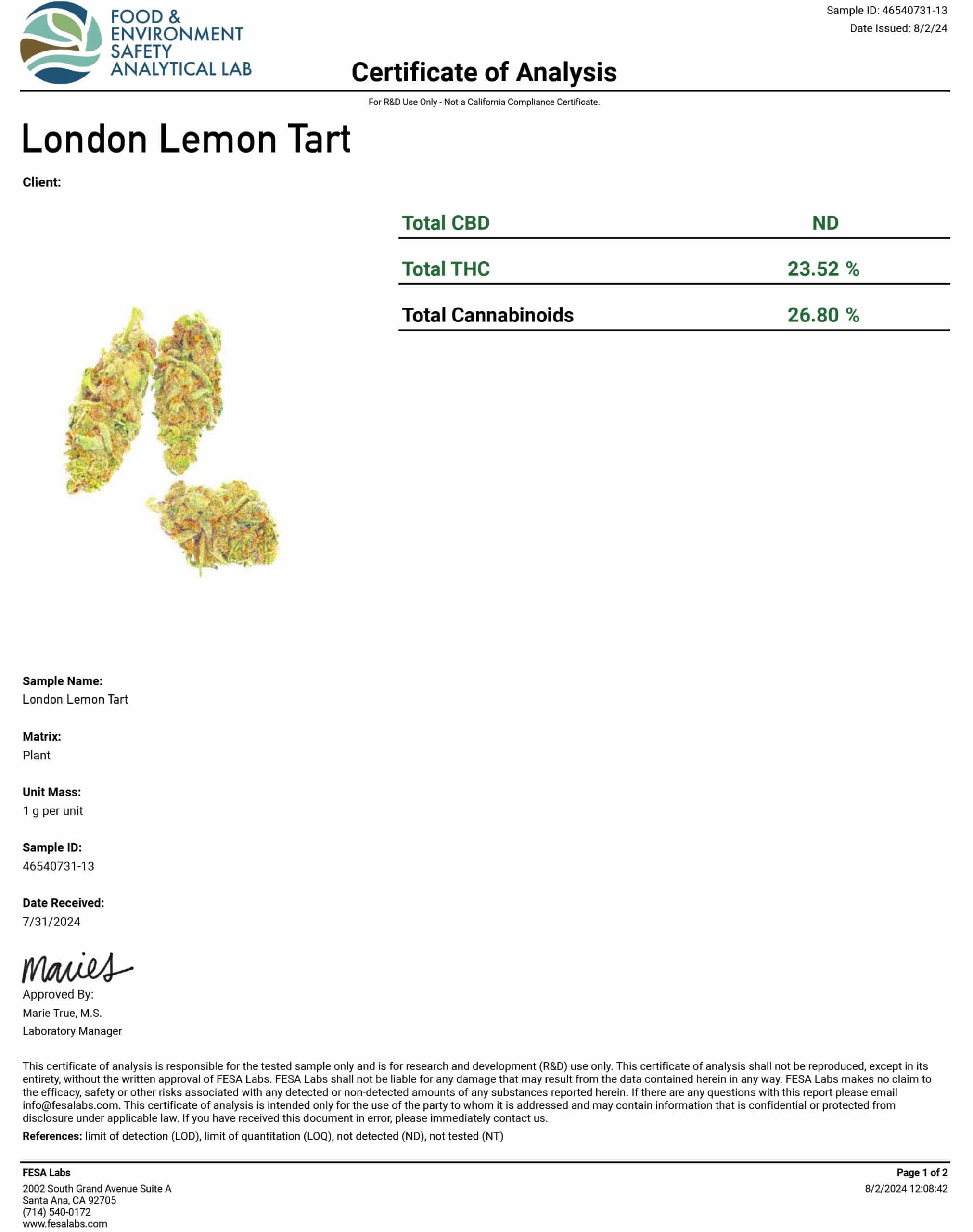 - London Lemon Tart: Click to view: COA 1 | COA 2