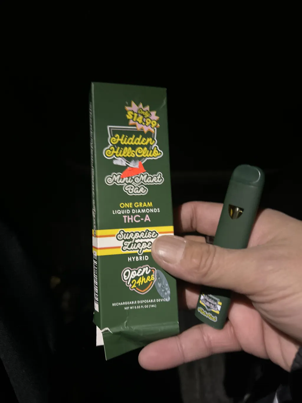 I got this one as my freebie during the 4/20 sale, but it came completely broken, as to say no matter what I tried I couldn’t get the device to fire and after a few minutes on the charge it refused to turn off it’s light OR fire until the battery was exhausted. I sent my information hoping to get some tips or something but I guess I got lost on the shuffle as I didn’t get even condolences lol but that said, it was the free one. The one I paid for for the BOGO worked with no issue, so I imagine it’s a rare problem but nobody ever reached out to me about it. I eventually gave up trying to fix the connection and slowly transferred the contents best I could into a freshly emptied disposable. The product itself was still high quality,, maybe my 4th favorite effect wise from hidden hills. Low rating simply because the delivery system came entirely malfunctional and I either was ignored when asking for any form of feedback/support or I was forgotten about as I didn’t follow the sites process to request a support email. Leaving them the description above.